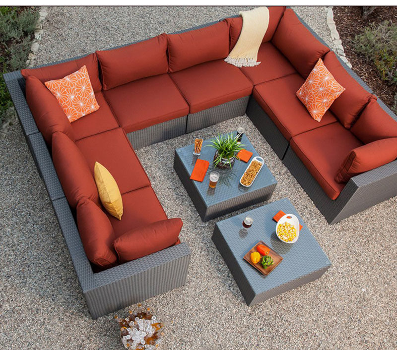Outdoor rattan sofa combination rattan pedal sample house display center corner terrace living room balcony courtyard imitation rattan woven furniture