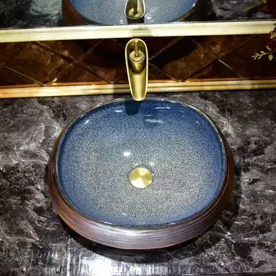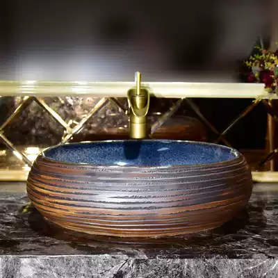 Table basin Retro oval table washbasin Mediterranean washbasin European style powder room Ceramic art washbasin