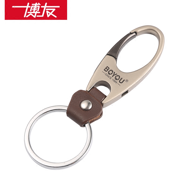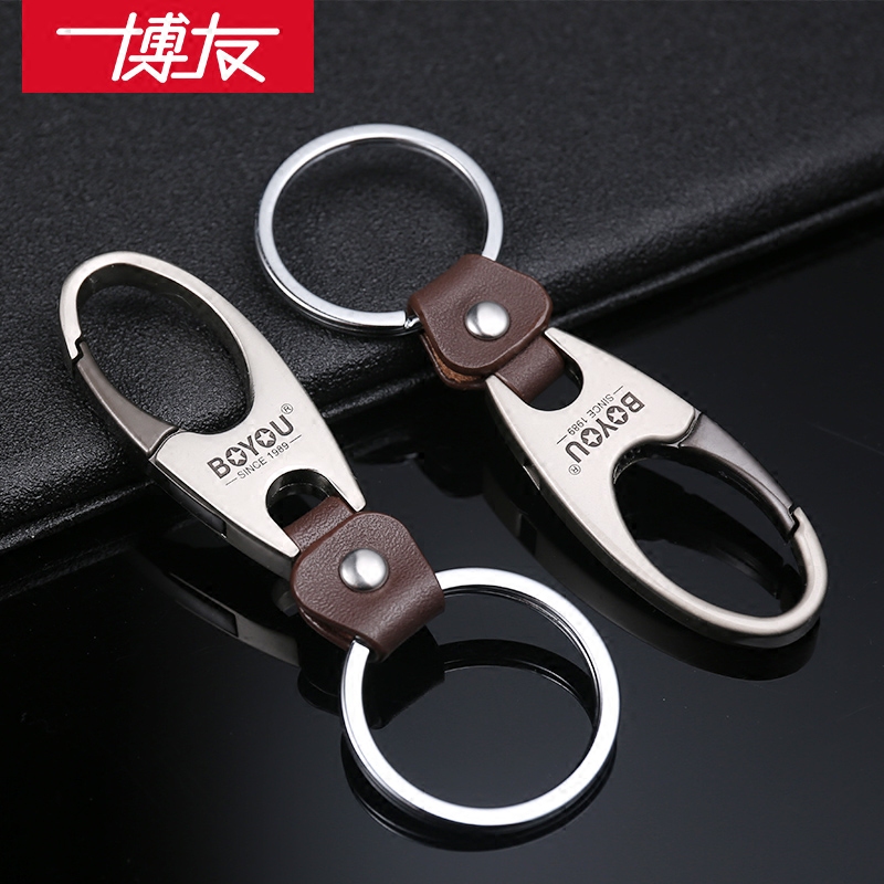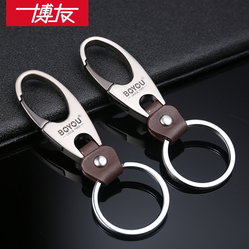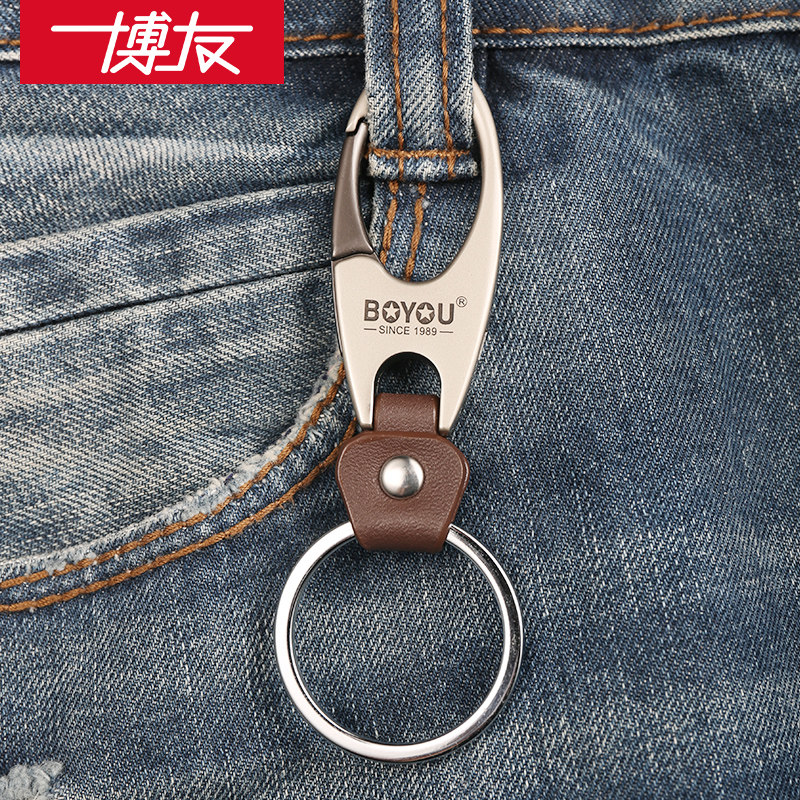 Boyou Retro Bull Leather Car Key Buckle Men's Waist Hanging Genuine Leather Car Key Ring Personality Stainless Steel Key Ring Woman