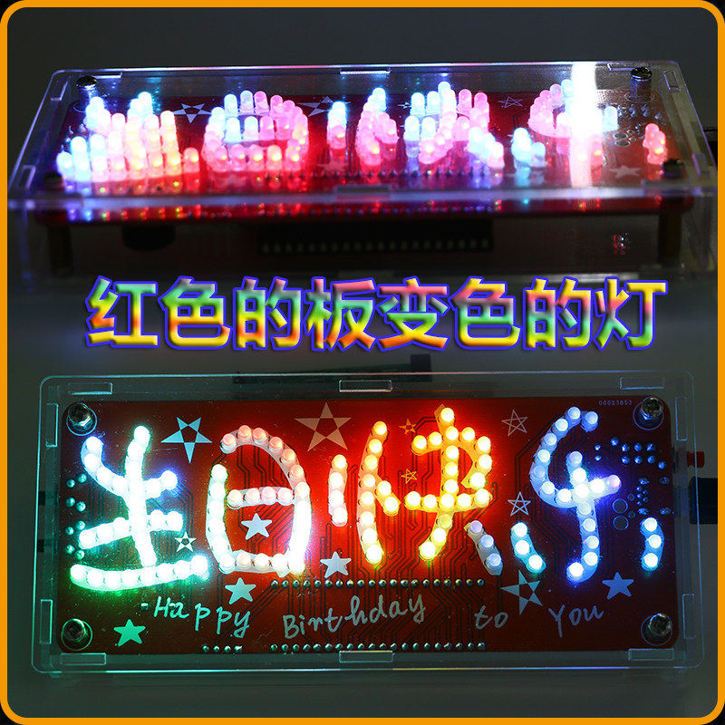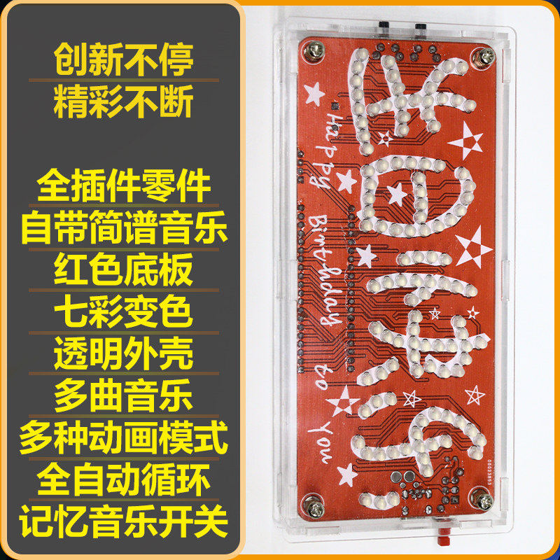 Happy birthday with an arrow through the heart Love running water lamp Seven color discoloration Music 51 Single wafer Electronic DIY kit