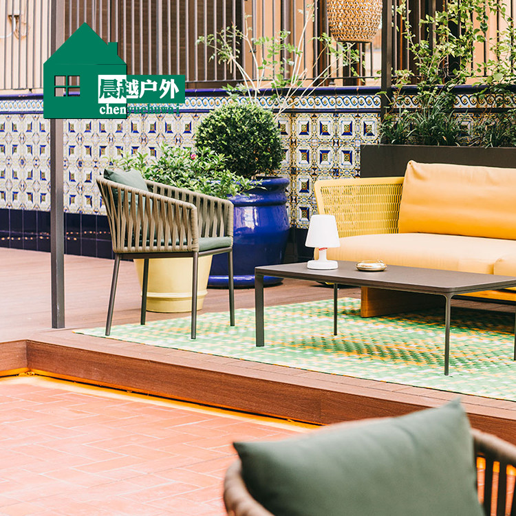 Outdoor leisure table and chair balcony fashion and creative imitation rattan chair three-piece model room sample house display center imitation rattan table and chair combination