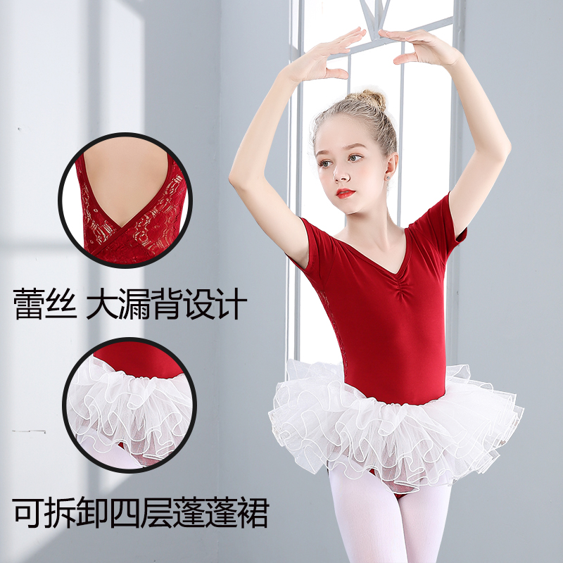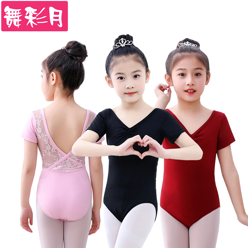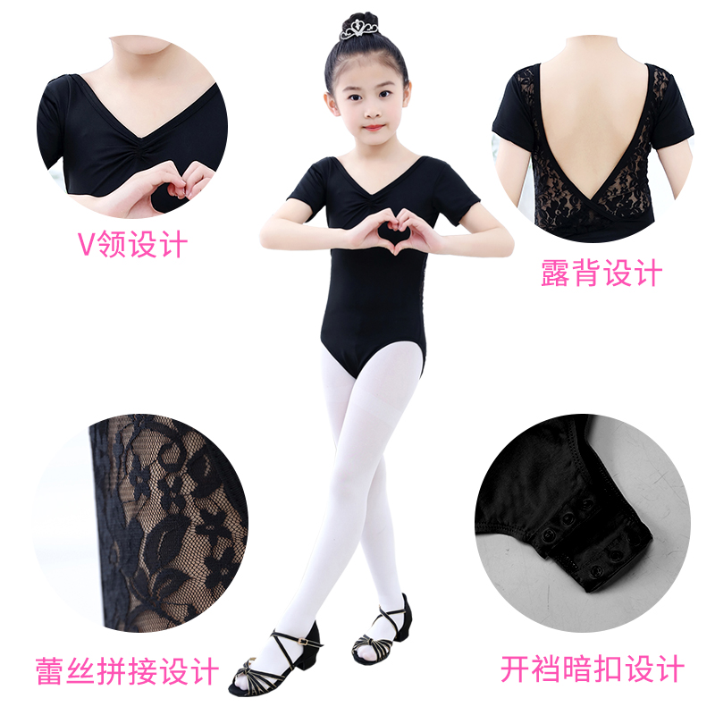 New summer children's dance practice clothes short-sleeved Latin dress black lace girls Chinese dance folk dance