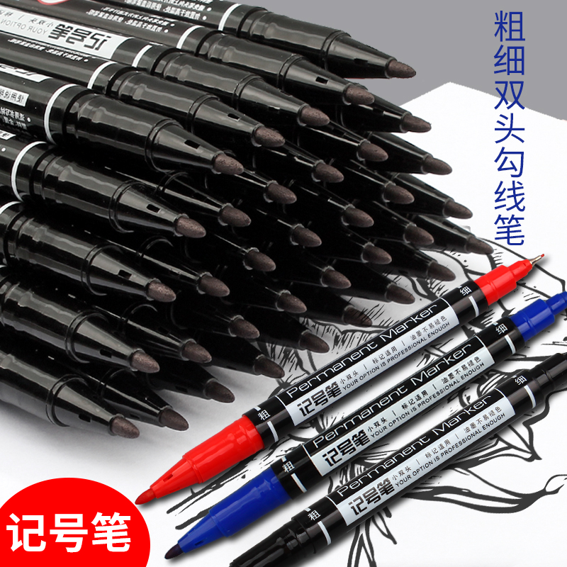 Able Double Head Oily Black Mark Pen Singularity Pen Child Painting Fine Head Hook Pen Small Head Line Sketching Wholesale Macpen Sketching Fine Art Hooking Pen Small Double Head Quick Dry Anti-Aqueous Pen