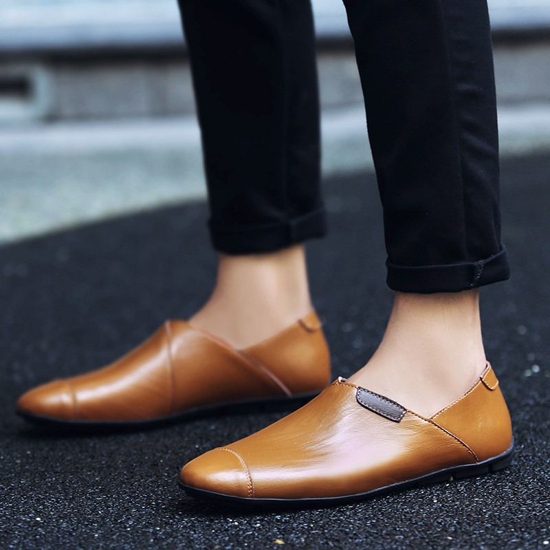 Korean version of loafers leather beanie shoes large size men's leather shoes British wild beanie men's shoes autumn lazy shoes
