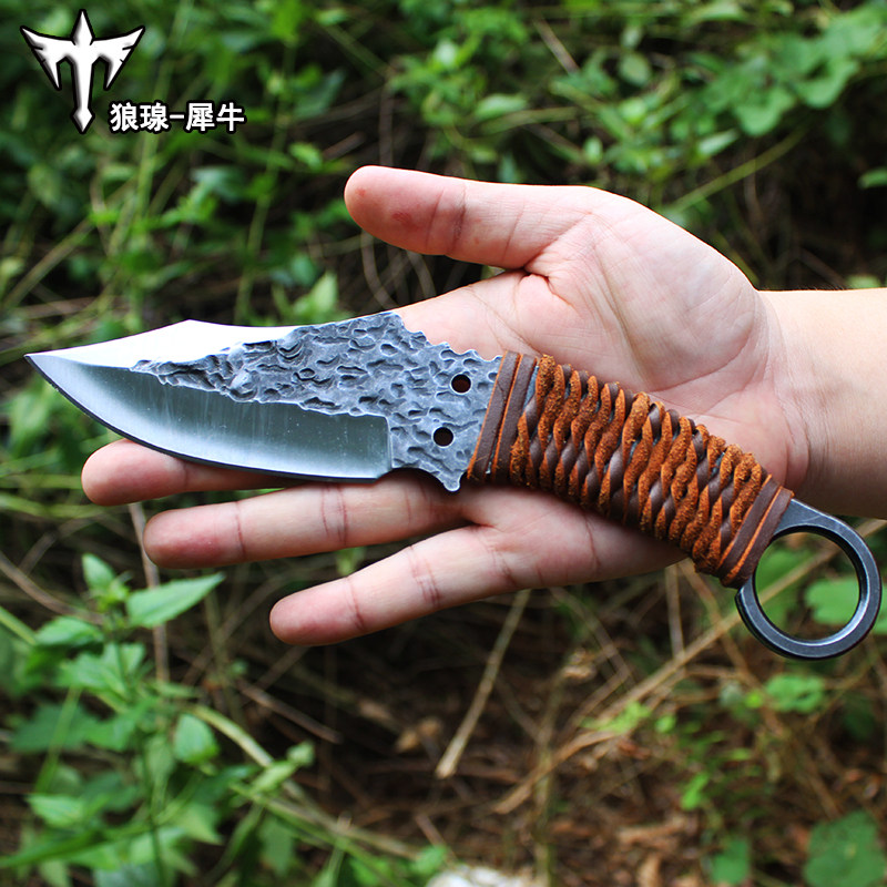 Forging with small knife hand forged and knife outdoor tactics High hardness straight knife Field courting military knife with knife-proof carry-on cutter