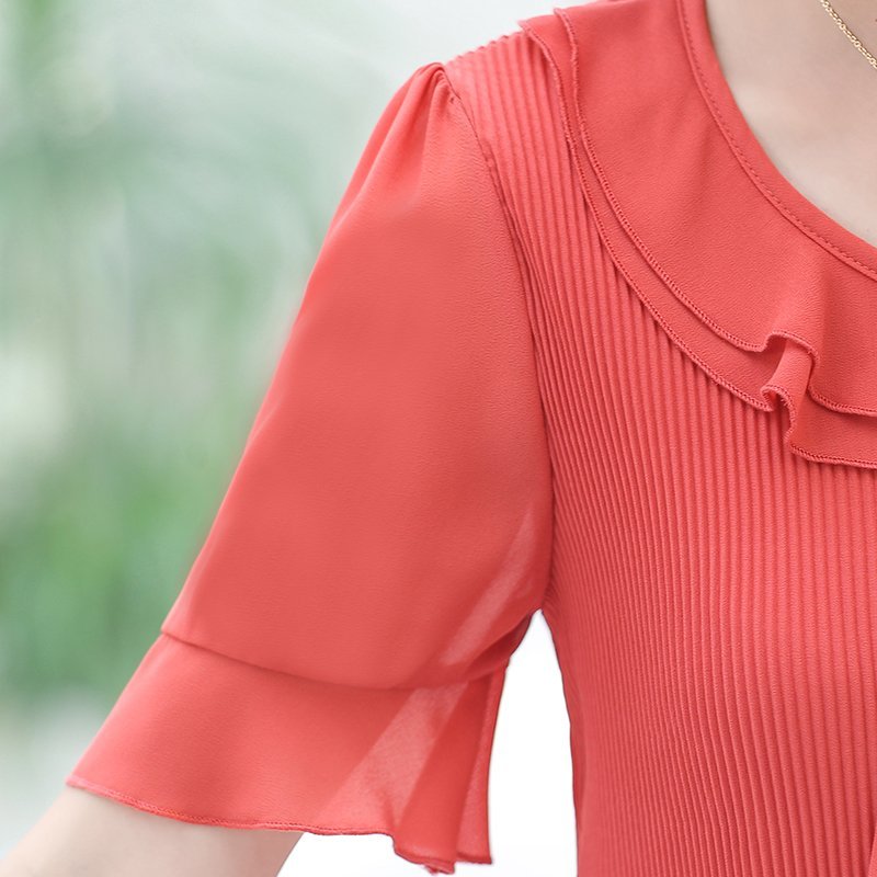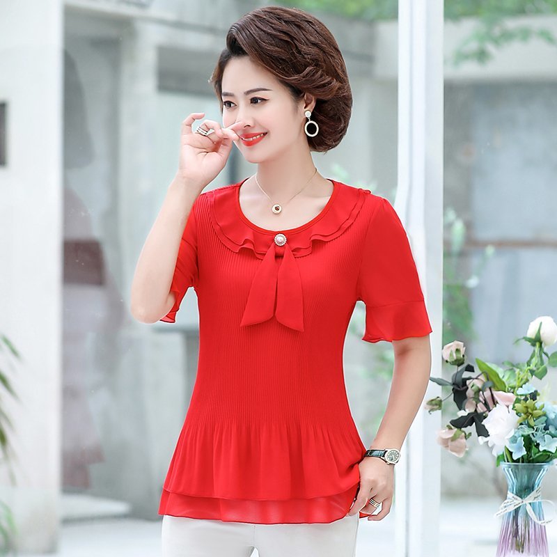 Mother's Day mom summer dress short-sleeved chiffon shirt T-shirt middle-aged women summer top middle-aged women short-sleeved bottom shirt