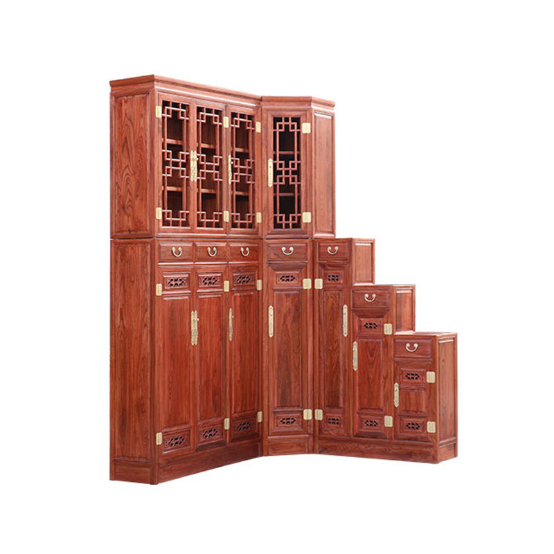 Chinese style shoe cabinet New Chinese full solid wood door hall cabinet door opening large capacity corner cabinet high and low combined into door-closed cabinet