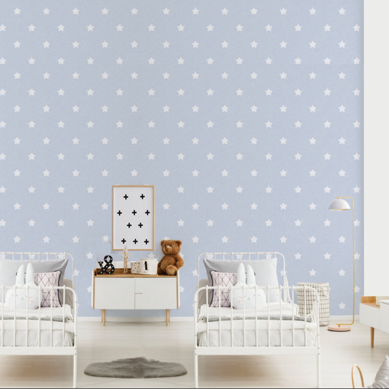 Children's room blue star vertical bar AB version of Korean environmental protection wallpaper can be scrubbed to remove formaldehyde wallpaper oversized 16 square meters
