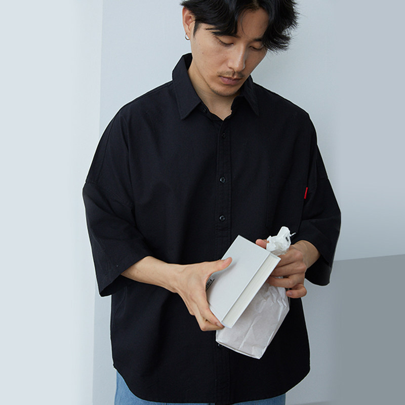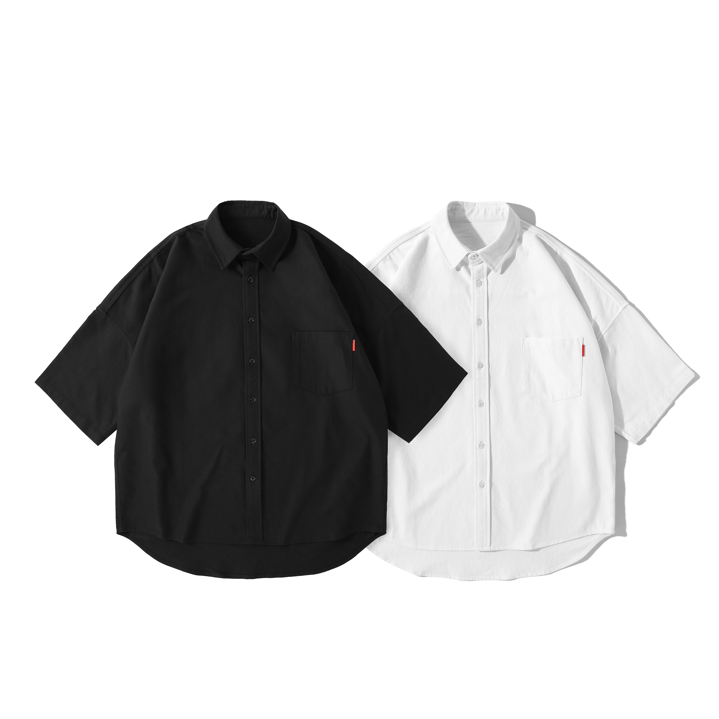 Pure Shirt for Men Japanese oversize Black Vintage Cotton Oxford Spinning Half sleeve Short Sleeve Shirt
