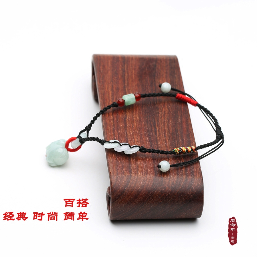 Emerald Jade Ben Year Red Rope Woven Foot Necklace Pig Five Colorful Rope Black 100 Hitch Fashion Men And Women Lovers