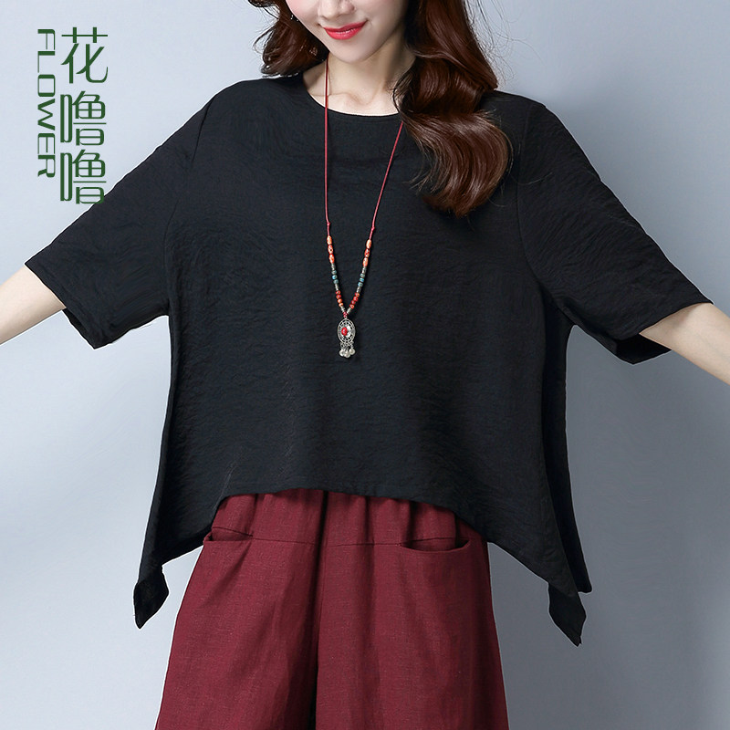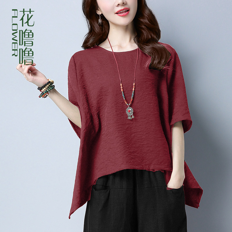 Hualulu bat shirt top women's 2022 new summer dress mid-sleeve loose summer short section mother short-sleeved t-shirt