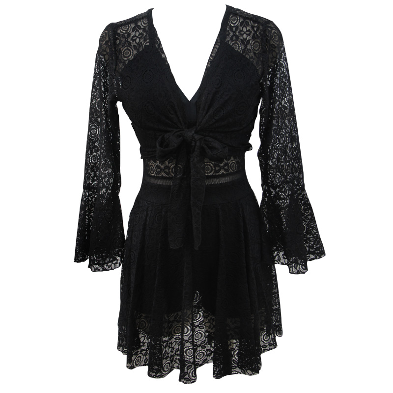 Black swimsuit woman big size weight mm200 catty dress style conservative display slim cover long sleeve hooded spa