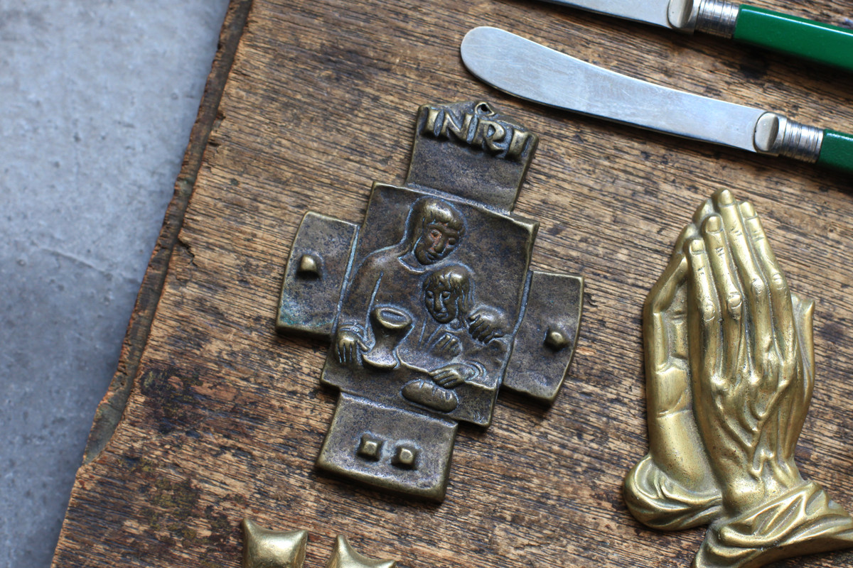Old Things Non 7 days Withdrawal Goods 1 Brass Inlaid Wooden Handle Fruit Fork Length 14cm3 Religious Cross Listing Long 10 5cm4 Prayer Hand decorations Long 10 Reds 174