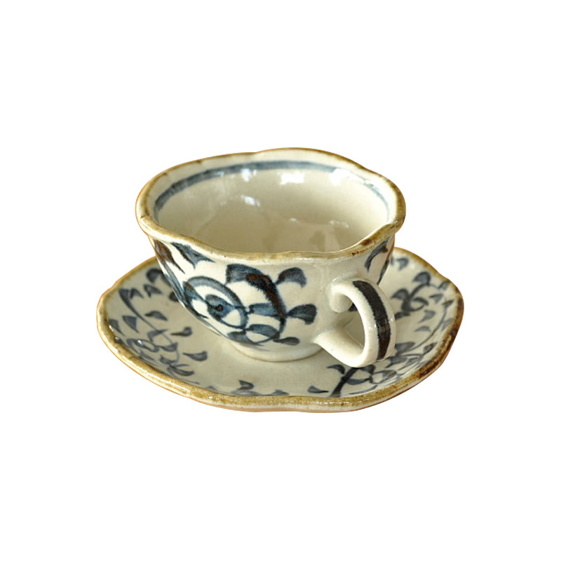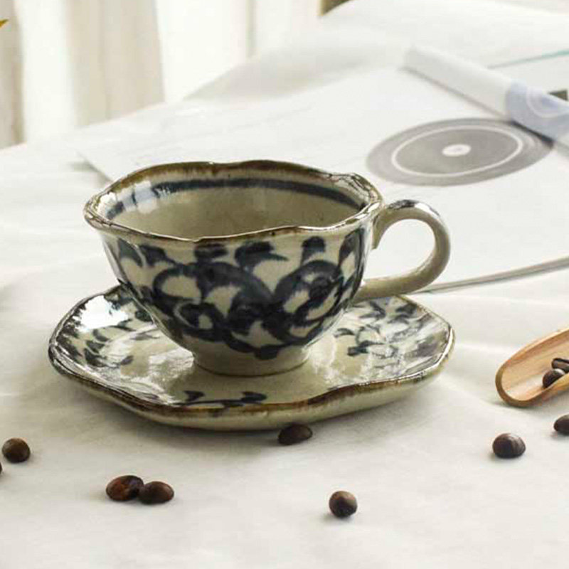 Japan imported original handmade simple arabesque rough pottery coffee cup mug with saucer set afternoon tea cup