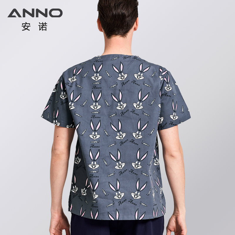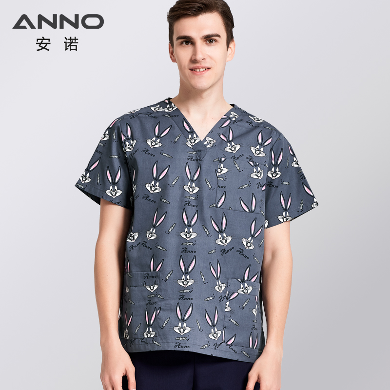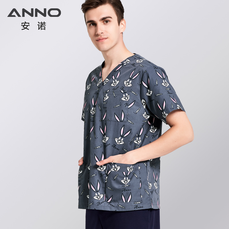 Anno ANNO surgical gown T C blended printing short-sleeved breathable male and female doctor nurse uniform overalls uniform suit