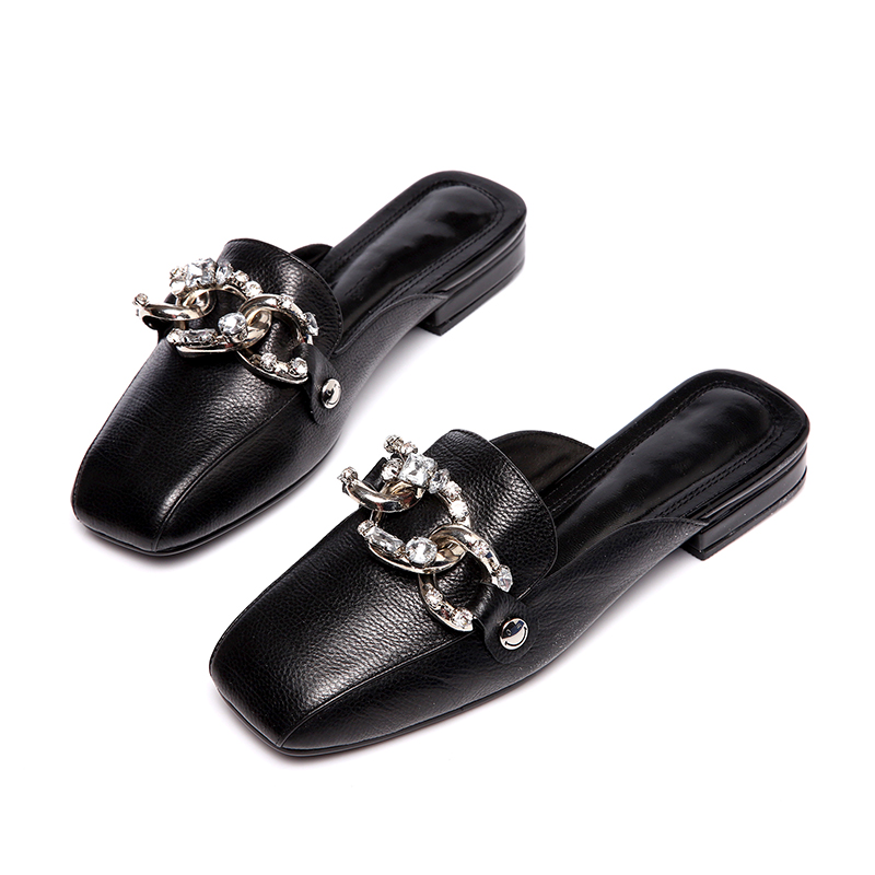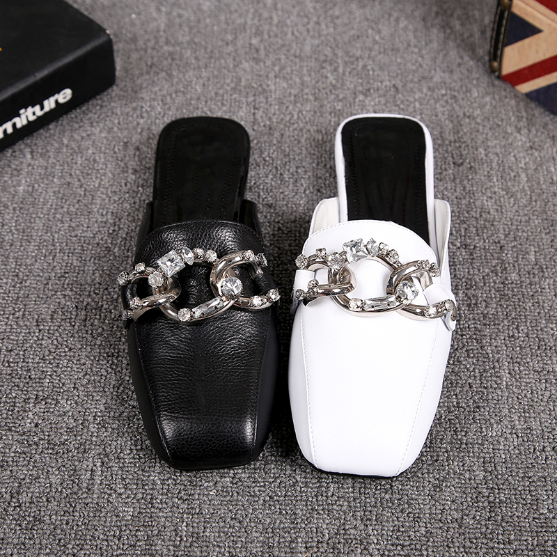 2022 New women's shoes leather skin slippers and shallow shawl - shan handbag slippers in the summer