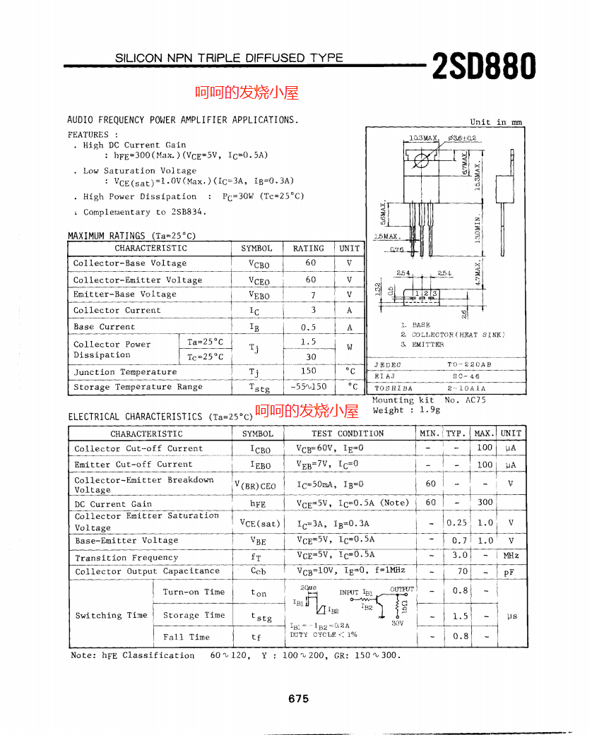 Original dress Japan TOSHIBA Toshiba 2SB834GR Green white word audio amplification tube in power tube B834
