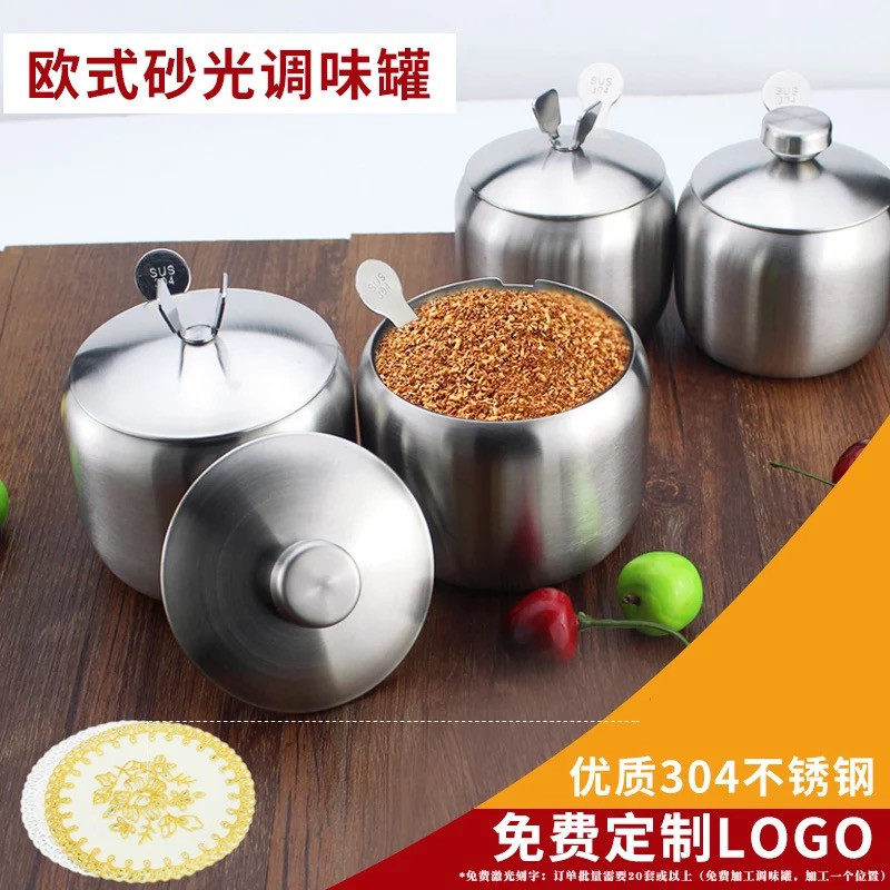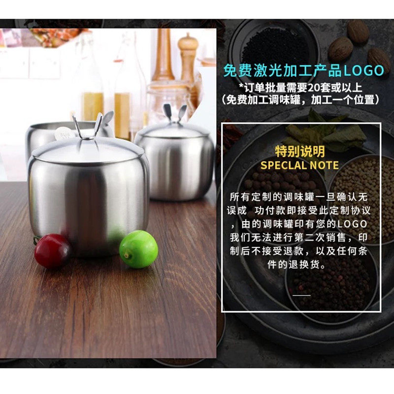 Food Grade 304 stainless steel taste pot pot seasoning pot chili oil household kitchen with lid seasoning box salt jar