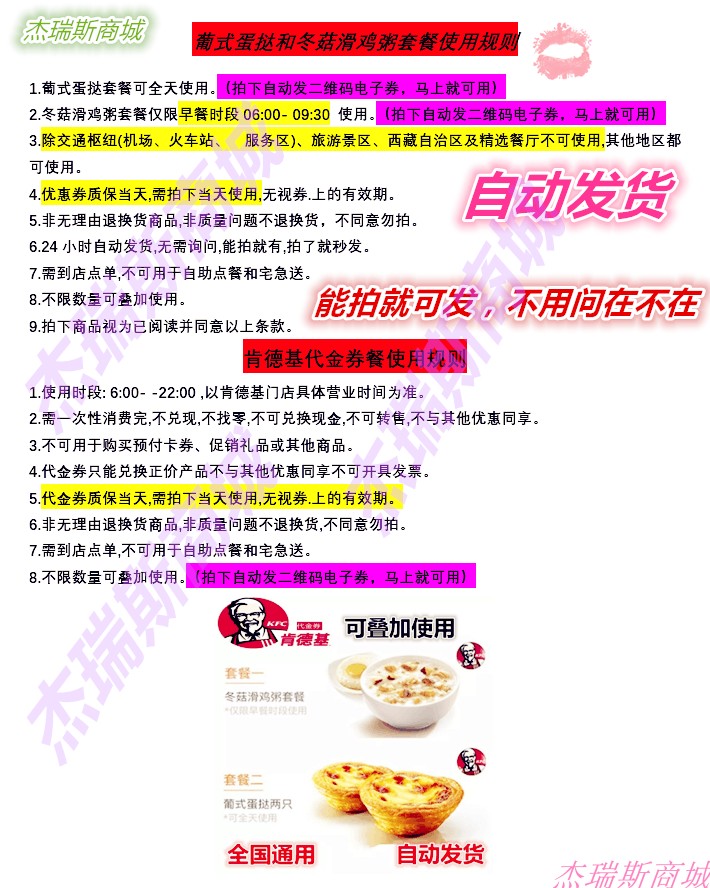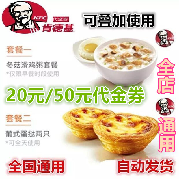 KFC KFC 20 yuan 30 yuan 50 yuan coupon voucher E-voucher Breakfast porridge voucher National use can be superimposed