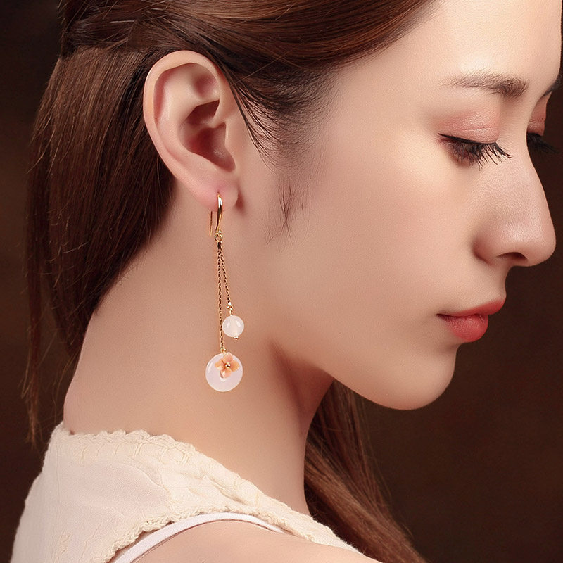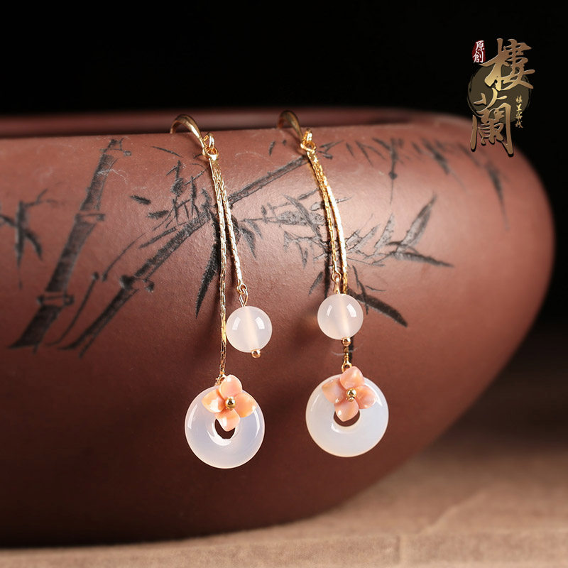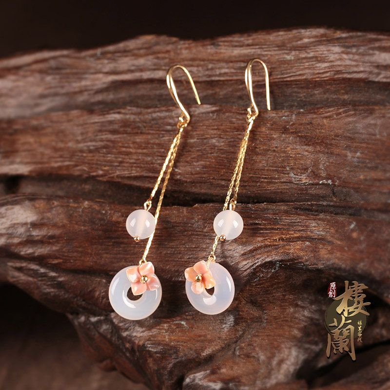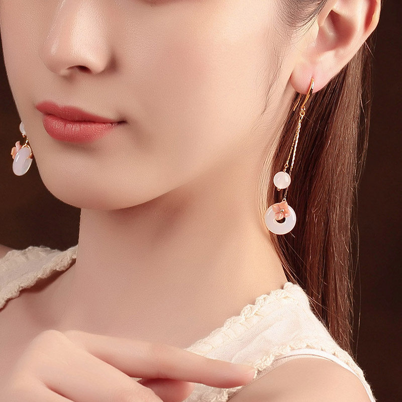 Antique earrings with Hanfu Chinese style retro white agate earrings cheongsam sterling silver jade earrings for women
