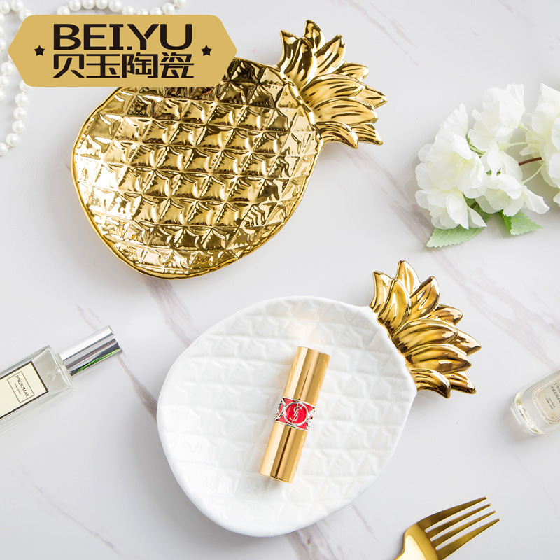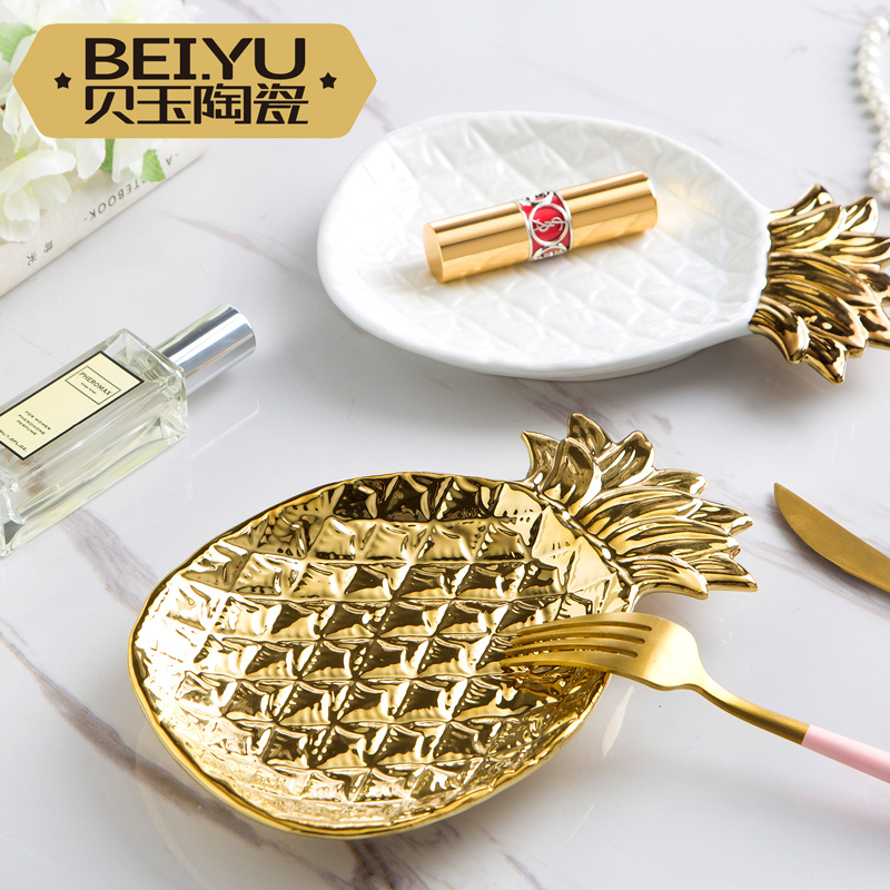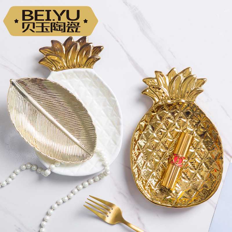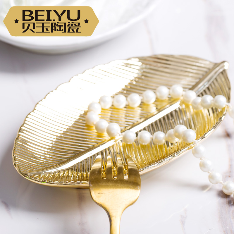 Beyu Nordic Fashion Plated Gold Jewellery Pan Ceramic Necklace tray Decorative Plate Table Top of the table