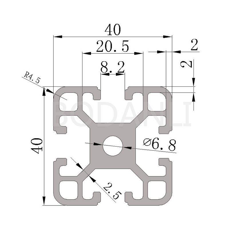 Bodanley aluminum extrusion material European standard 4040 black industrial aluminum alloy profile aluminum square tube profile thickness 2 5mm frame
