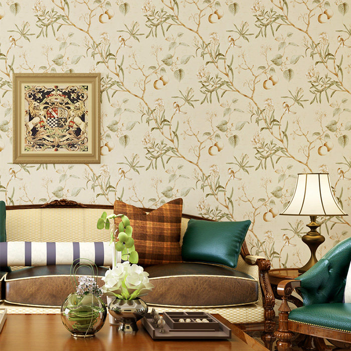 Shenzhen non-woven wallpaper printing retro American bedroom study living room TV background wall door-to-door package sticker CC
