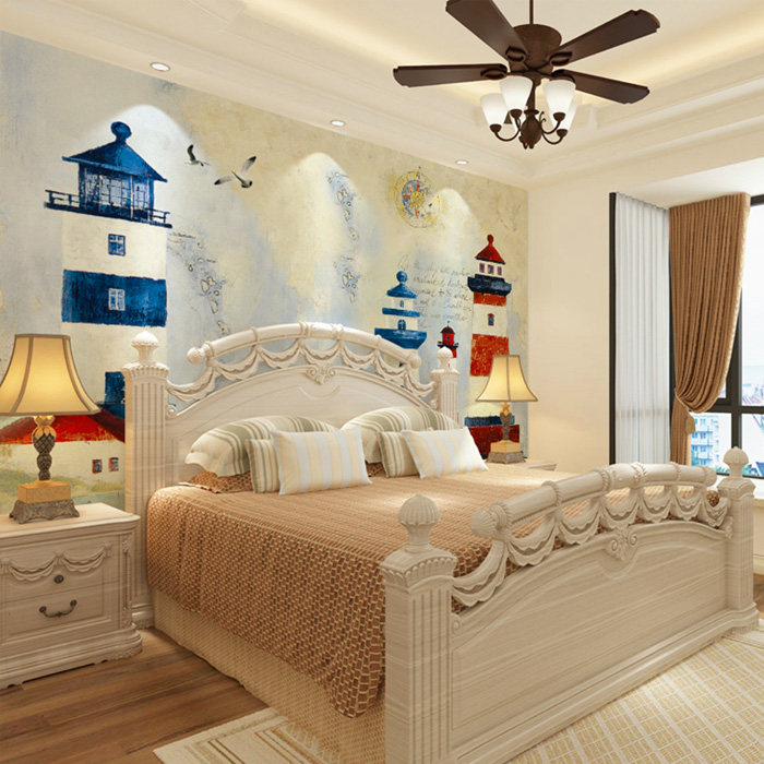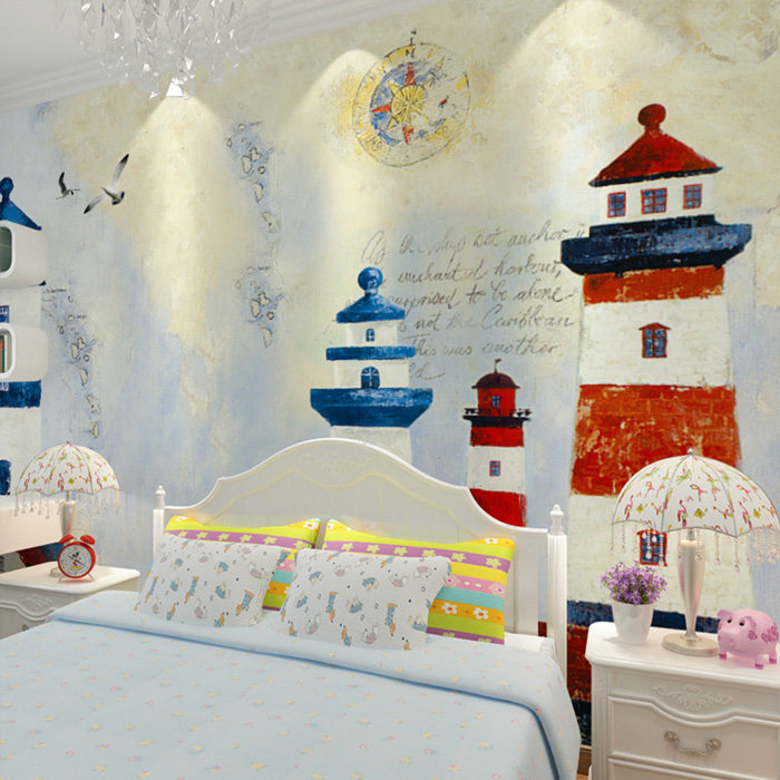 Shenzhen Nordic Mediterranean bedroom living room children's room cartoon TV background wall wallpaper custom mural