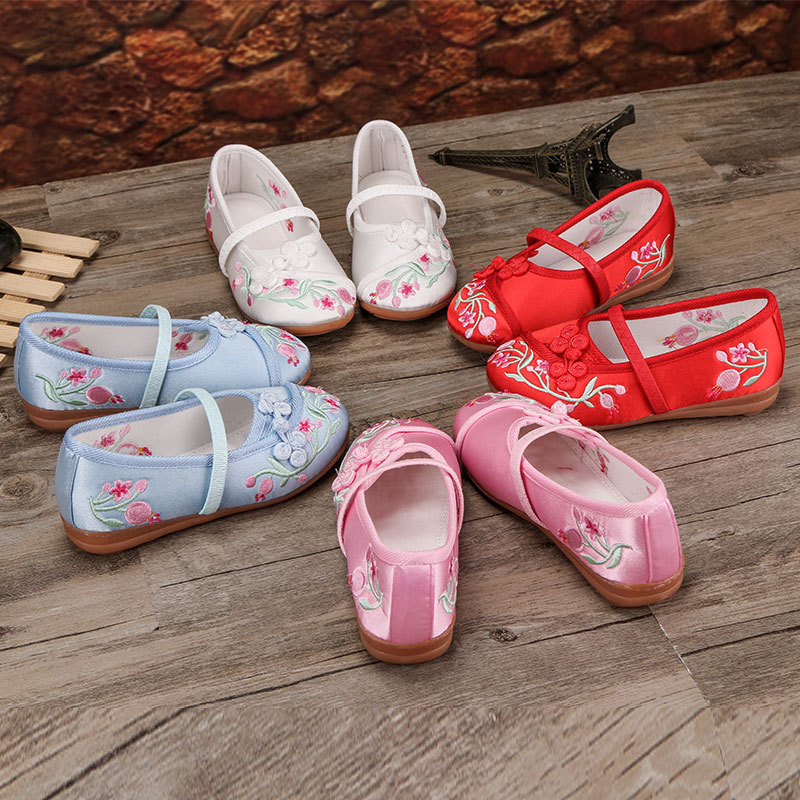 Young children's ancient costume shoes girls ancient embroidered shoes children little girls Chinese style dance shoes show shoes