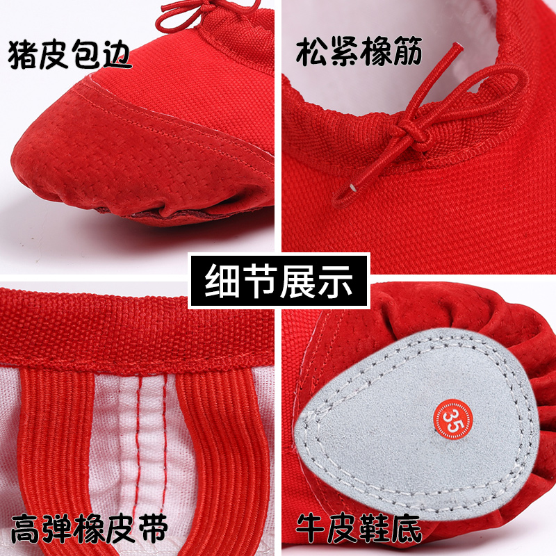 Red Dancing Shoes Children Kindergarten Girls Dancing Shoes Soft Bottom Princess Practice Shoes Adults Toddlers Ballet Shoes-Taobao