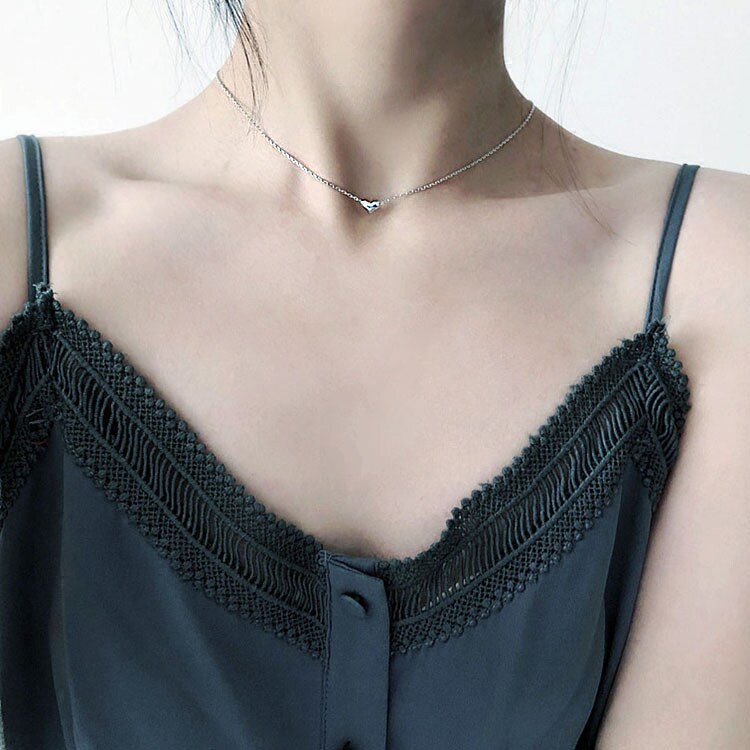 Small Peach Hearts Necklace Through Body 925 Pure Silver Plated Platinum Lock Bone Chain Brief about 100 Lapped Short necklace Decorative Woman