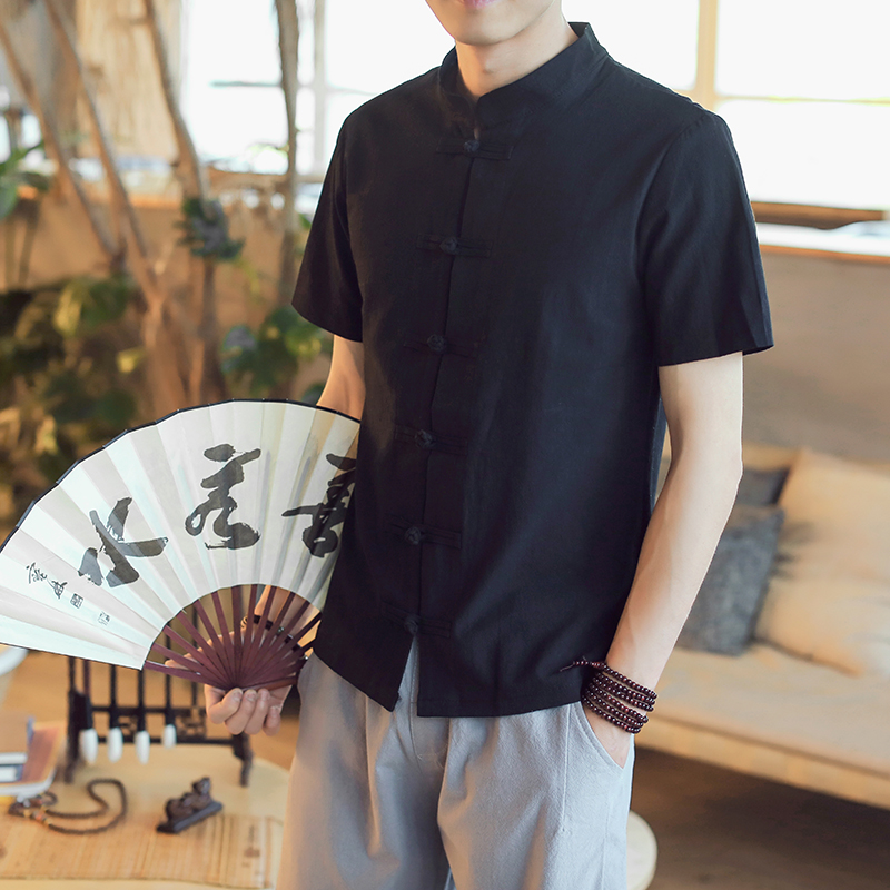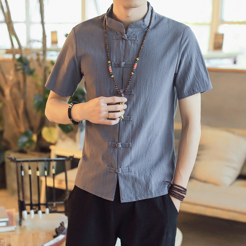 China Wind Summer Men's Clothing Linen Short Sleeve Men's Don'ts Chinese Pan Button Cotton Linen Collar Shirts National Wind Numb clothes