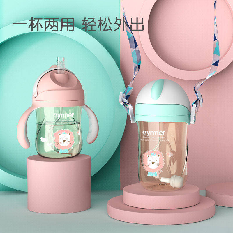 Love for beauty Dual-use School Drinking Cup Straw Cup Duckbilled Cup Anti-Fall Leakproof Cup With Straw Handle Children's Water Cup