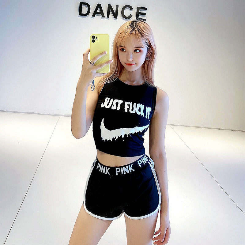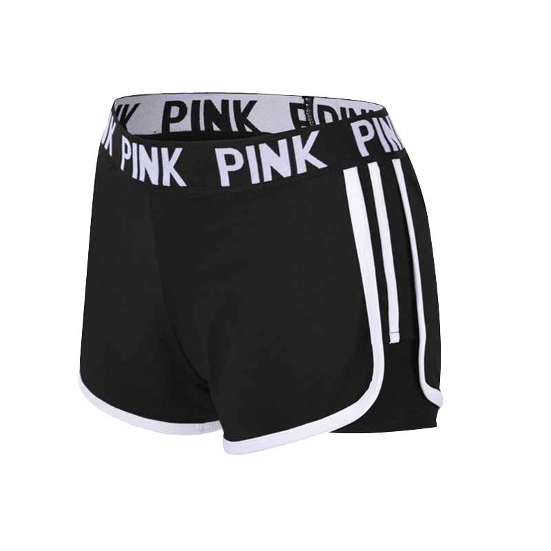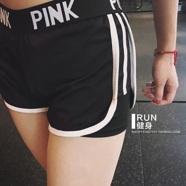 Net red fitness running speed dry elasticity PINK letter anti-walk fake two-piece shorts for women summer cheerleader