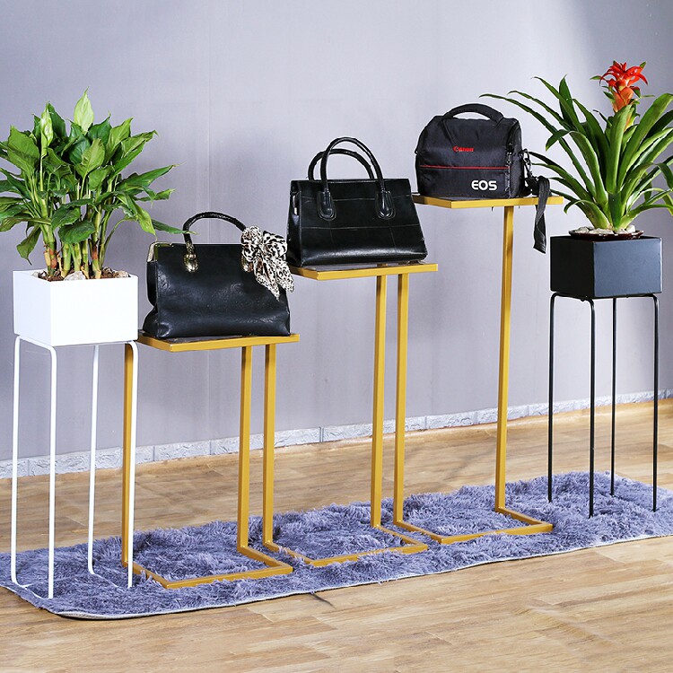 Clothing store window display table golden island table shoe bag showcase display small display stand combination high and low flow table