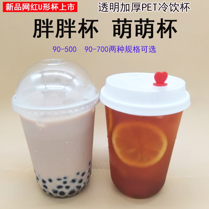 Net red milk tea cup U-shaped 90-caliber PET high-penetration 500 700ml cold drink cup U-shaped fat cup disposable with lid