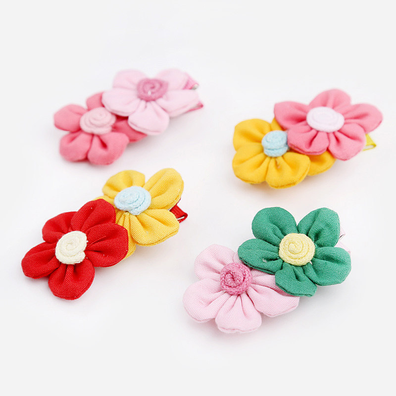 Children's hair accessories Korean version of the contrast color double flower hairpin hair ring