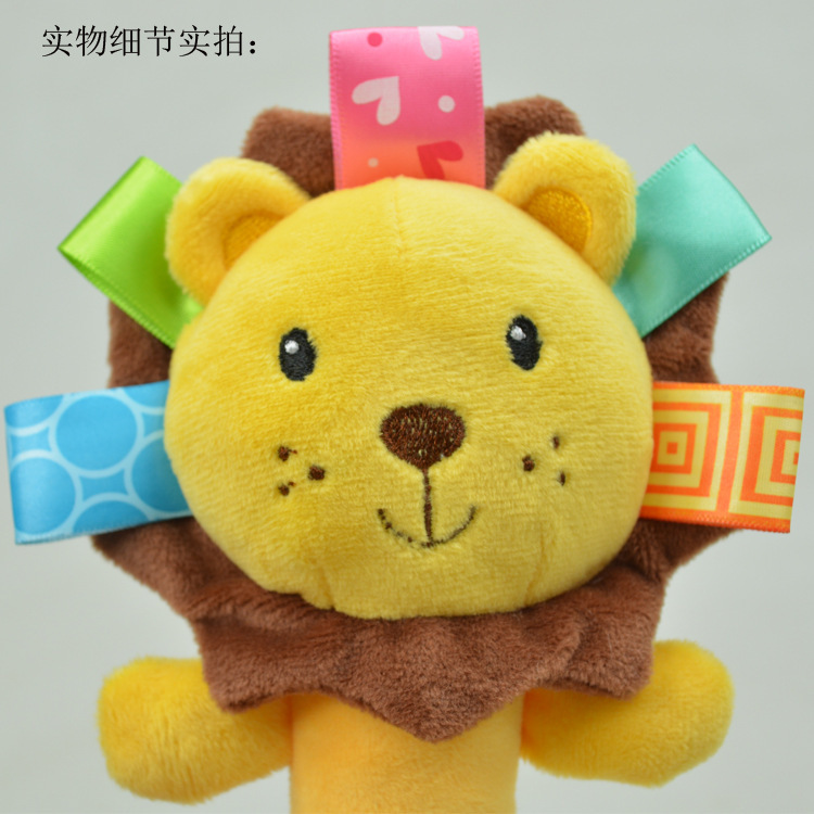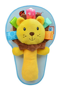 Best selling American sozzy multifunctional baby educational animals hand bell hand shake stick BB stick color card packaging