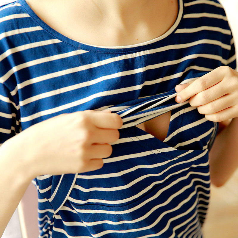 Dream honey striped nursing top can be worn outside pregnant women's home clothes Summer pajamas pure cotton short-sleeved nursing top