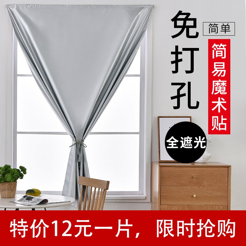 Magic Sticker Punch-Free Mounting Curtain Shading Bedroom Anti-Light Insulation Simple Finished House Rental Sun Shading Full Shade Cloth