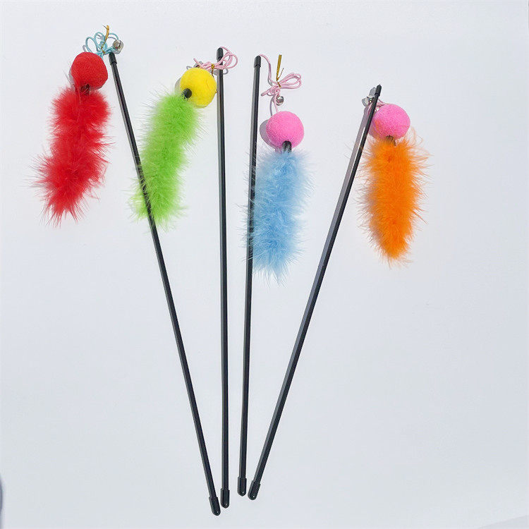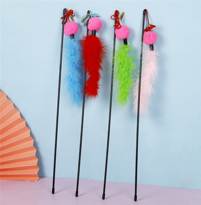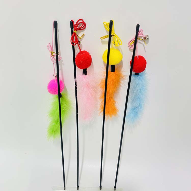 Pet Supplies Kitty Kitty Cat Interactive Cat Toy Pure color feather wool ball with bell sounding feather teasing cat stick