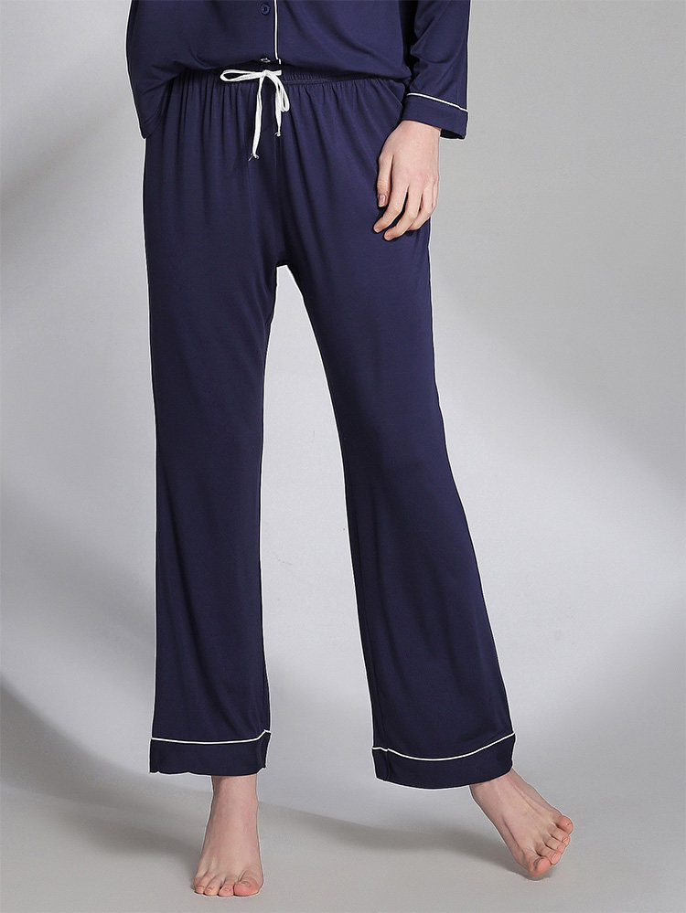 Spring Summer Women's Modale Sleeping Pants Slim Fit White Trim White Side Home Long Pants 100 Hitch Slim Fit and Mast Size Pants