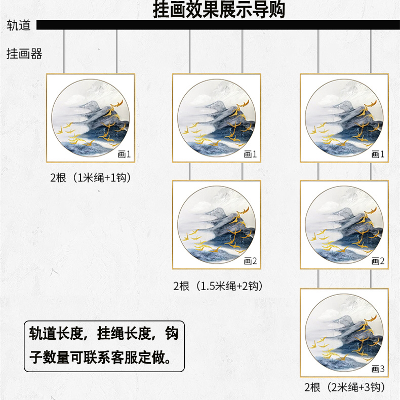Wire rope hanger Pulley nut Adjustable sliding guide rail Hanging painting hook line Oil calligraphy and painting exhibition hook