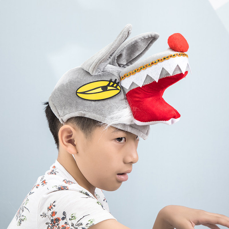 Section 61 Children perform cartoon headdress Adult big bad wolf and three little pigs story headgear game hat