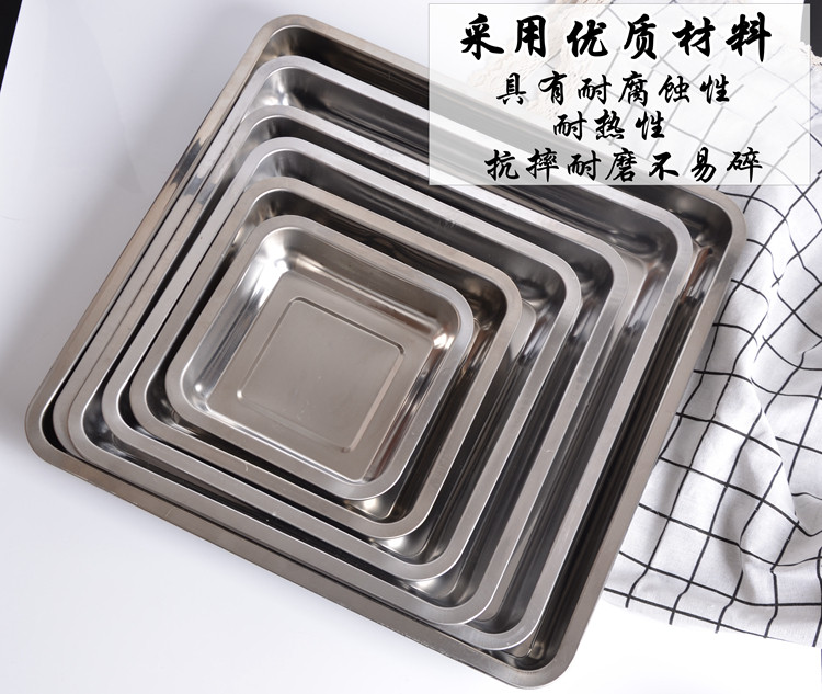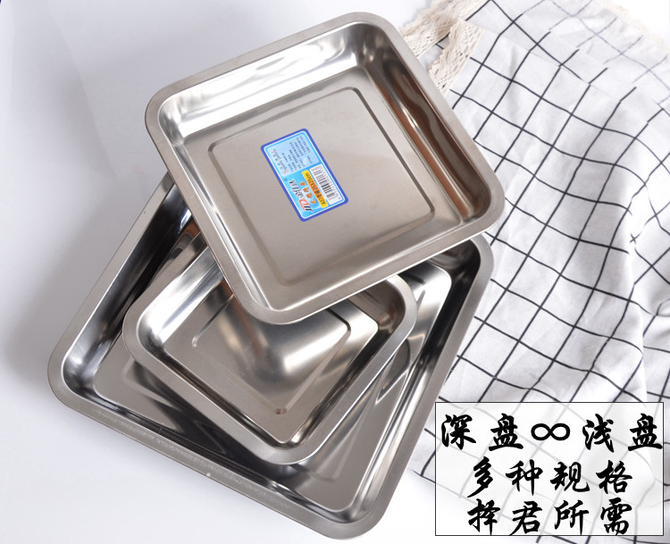 Thicken stainless steel plate square tray deep shallow dish barbecue plate baking plate tofu square