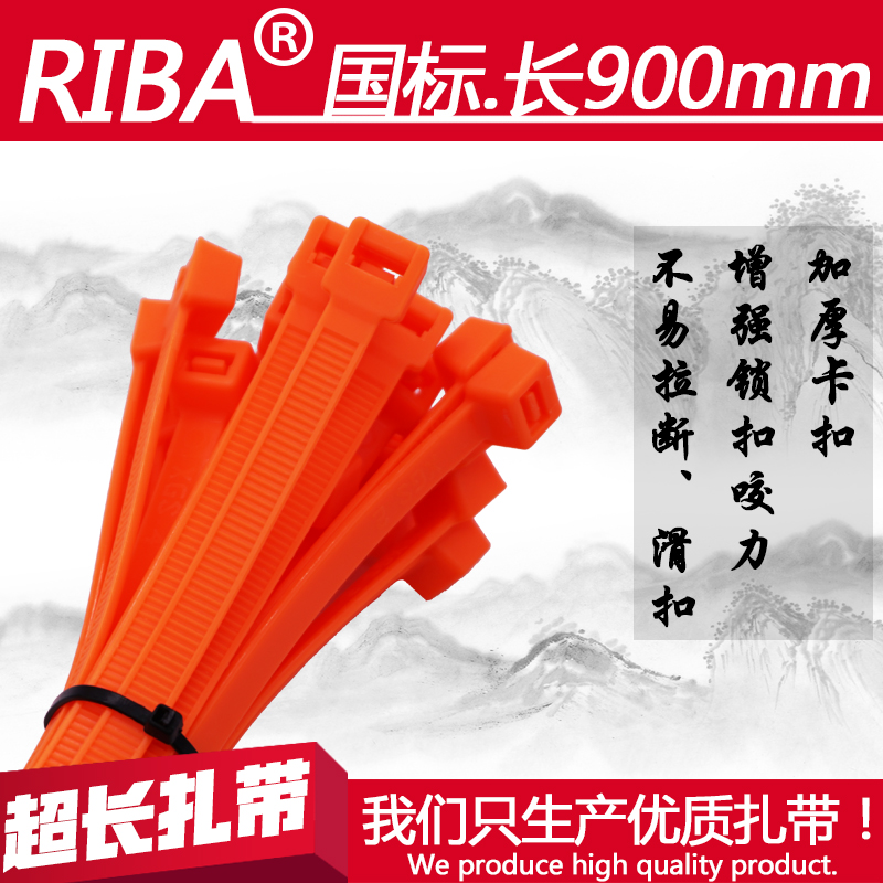 National standard nylon strap 10 x 900 width 8.8mm orange industrial-grade bundled cable buckle long end belt