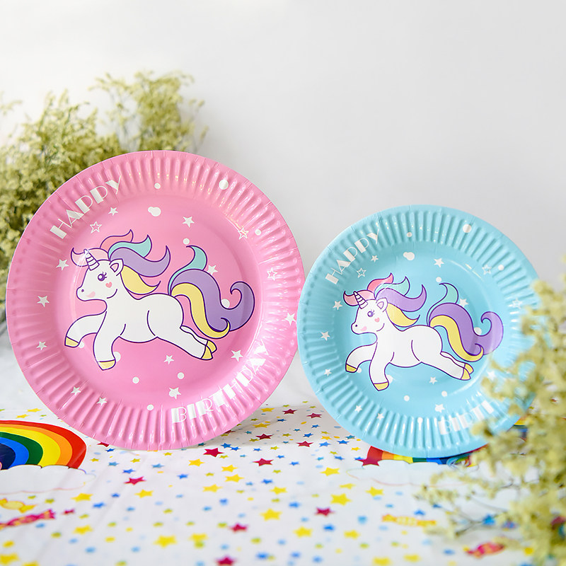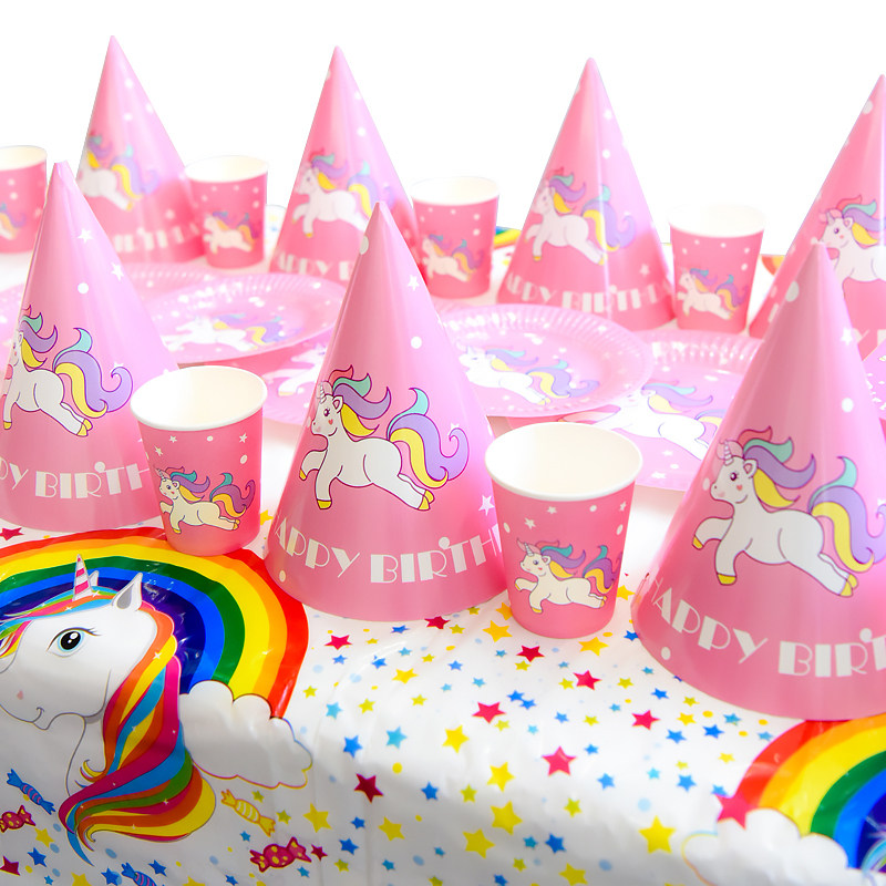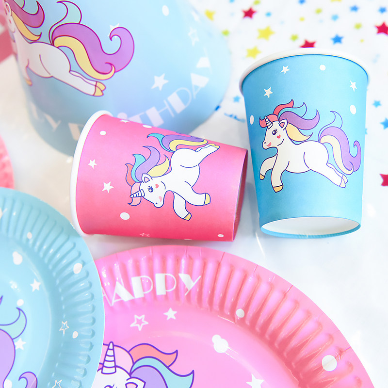 Unicorn theme Children's birthday decoration Disposable tableware Party supplies Cups and plates Picnic supplies
