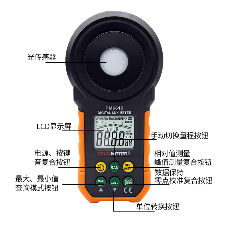 Huayi digital illuminometer photometer High precision MS6612 integrated lighting test instrument photo MS6612L
