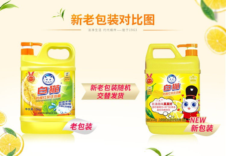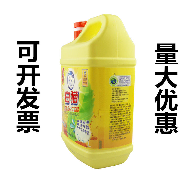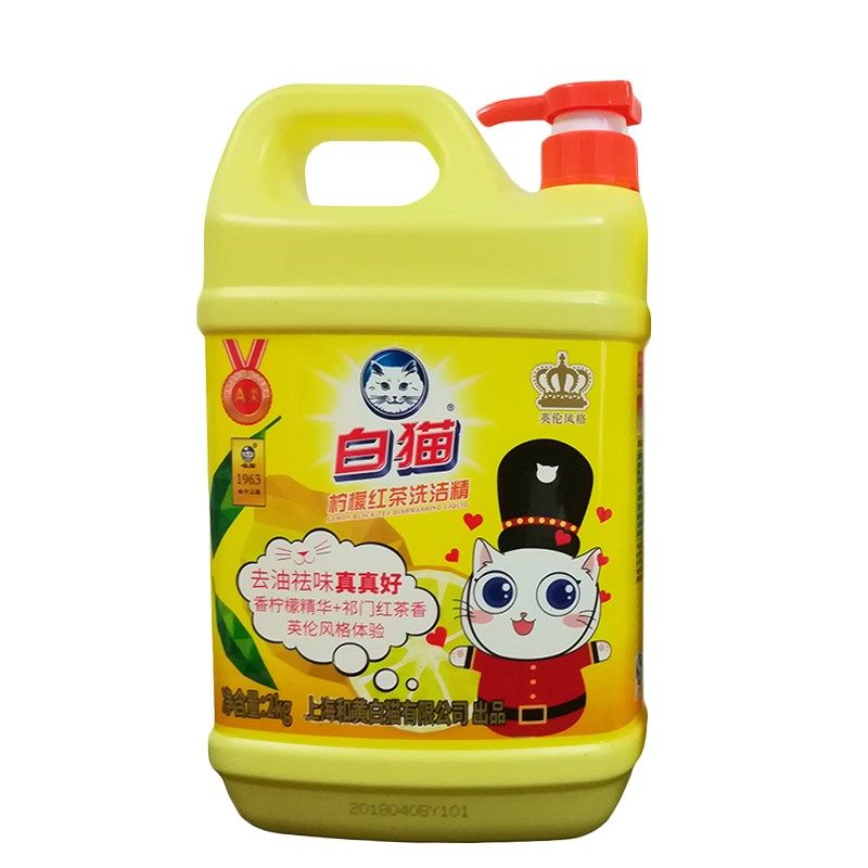White cat lemon black tea large bottle of detergent 4 catties family pack does not hurt hands, easy to pass water, efficient oil removal 2 kg pack