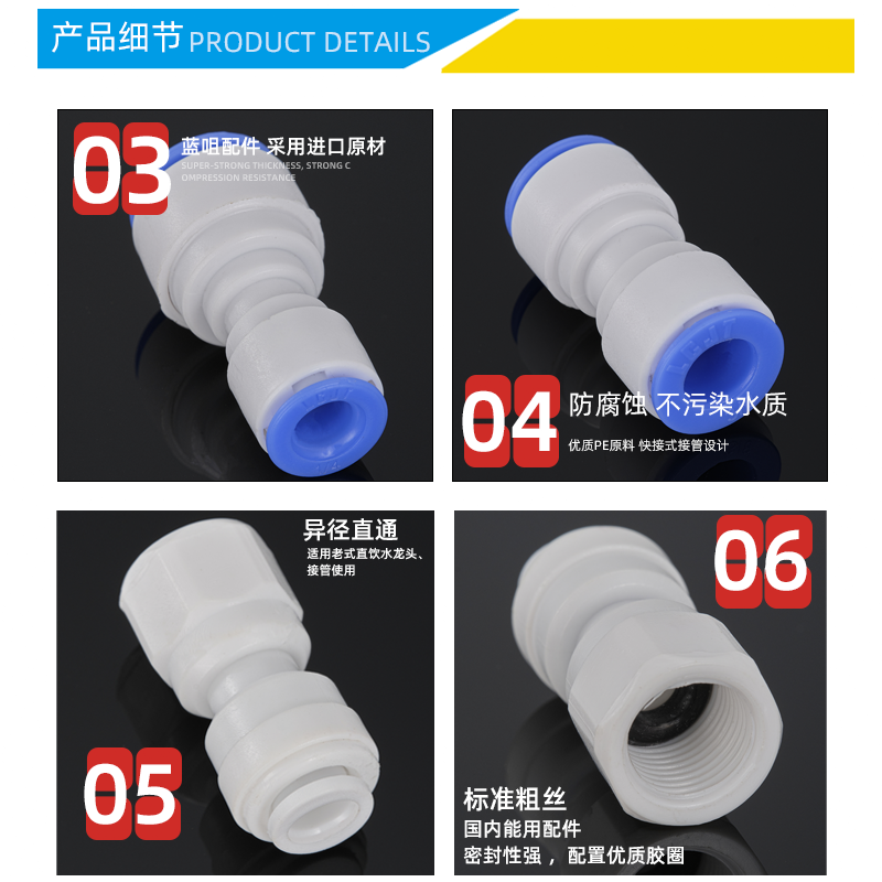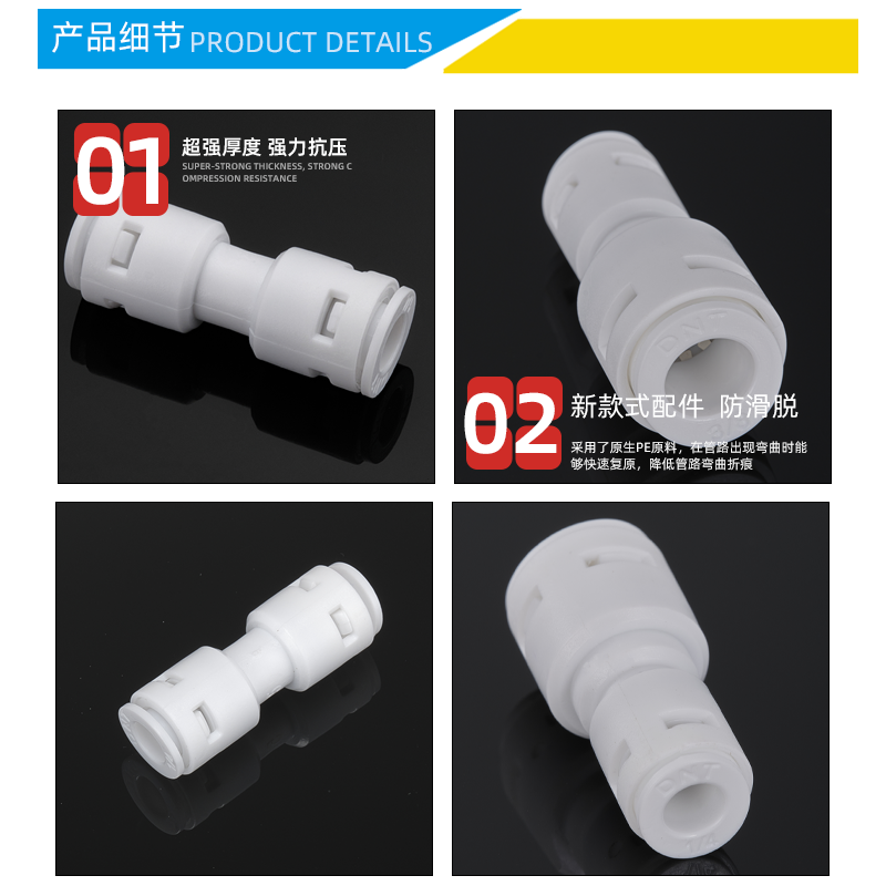 Water purifier accessories with Daquan water pipe joint water dispenser 2 points straight through 3 points elbow three-way water filter conversion head